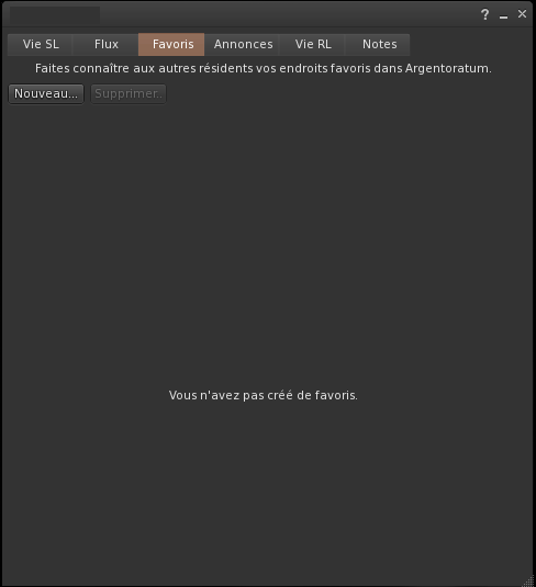 Capture de la fenêtre des favoris dans Firestorm : pas encore de favoris