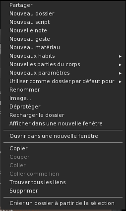 Menu contexture après clic droit sur un dossier protégé de l'inventaire.