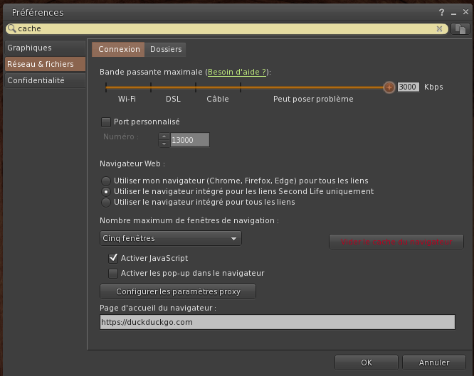 Exemple d'utilisation de la recherche des préférences de Firestorm