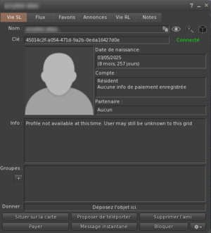 - La fenêtre du profil de l'avatar correspondant au nom de la carte s'ouvre.