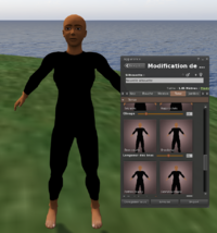 • Si vous utilisez l'option Modifier d'un vêtement ou d'une partie de corps, l''éditeur d'apparence s'ouvre. Votre avatar reste figé mais cette fois il joue déjà la pose en T. L'éditeur s'ouvre à la page de l'item que vous voulez modifier.