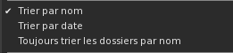 - Trier par nom / Trier par date : ces deux options sont exclusives, soit on trie les dossier et les fichiers par nom, soit on les trie par date.