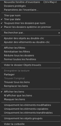- Vider les objets trouvés est une fonctionnalité du menu contextuel du dossier Objets trouvés de l'inventaire. Aucun autre dossier ne la propose.