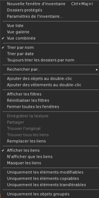 - Cette option permet d'ouvrir une nouvelle fenêtre d'inventaire. On peut ouvrir de nombreuses fenêtres d'inventaires contrairement au bouton