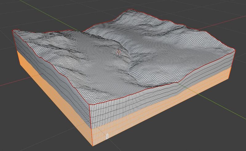 Terrain en mesh, sélection des bords avec CTRL avec + du pavé numérique.