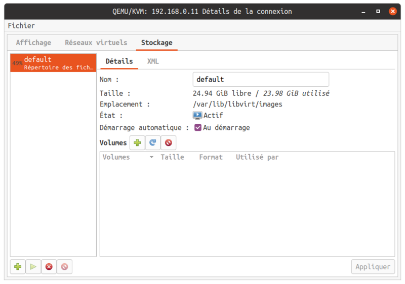 | actuel | 24 janvier 2023 à 01:50 | 935 × 655 (64 kio) | Acryline (discussion | contributions) | Fenêtre de gestion du stockage sur la serveur hôte. |